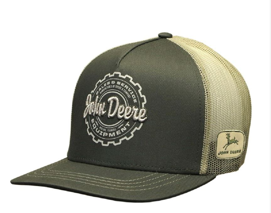 John Deere Trucker-Cap mit Netzrücken und gesticktem Vintage-Logo vorn und auf der Seite.
