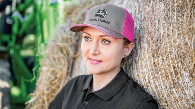 John Deere Cap mit Netzrücken in Pink mit besticktem Logo. Material: Vorne 100 % Baumwolle, Hinten 100 % Polyester