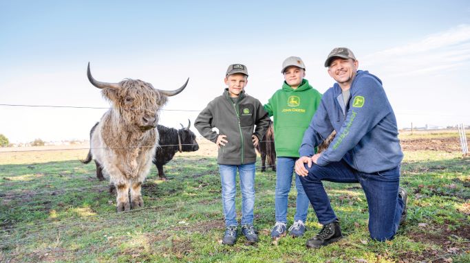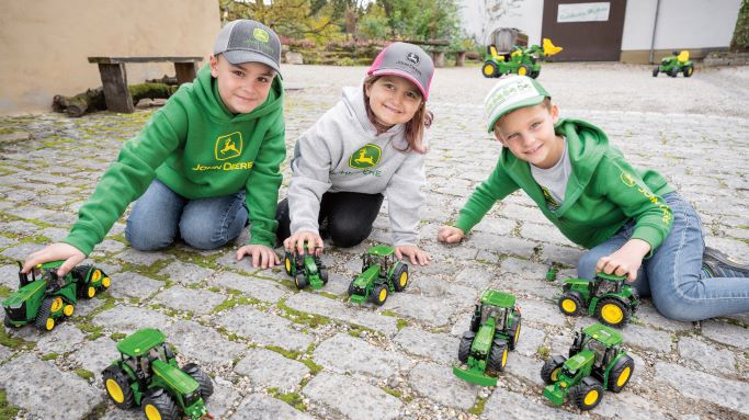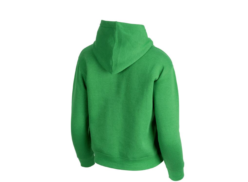 Grüner John Deere Kapuzenpullover für Jugendliche aus Fleece mit Markenlogo-Siebdruck auf der Brust. Material: 60 % Baumwolle, 40 % Polyester