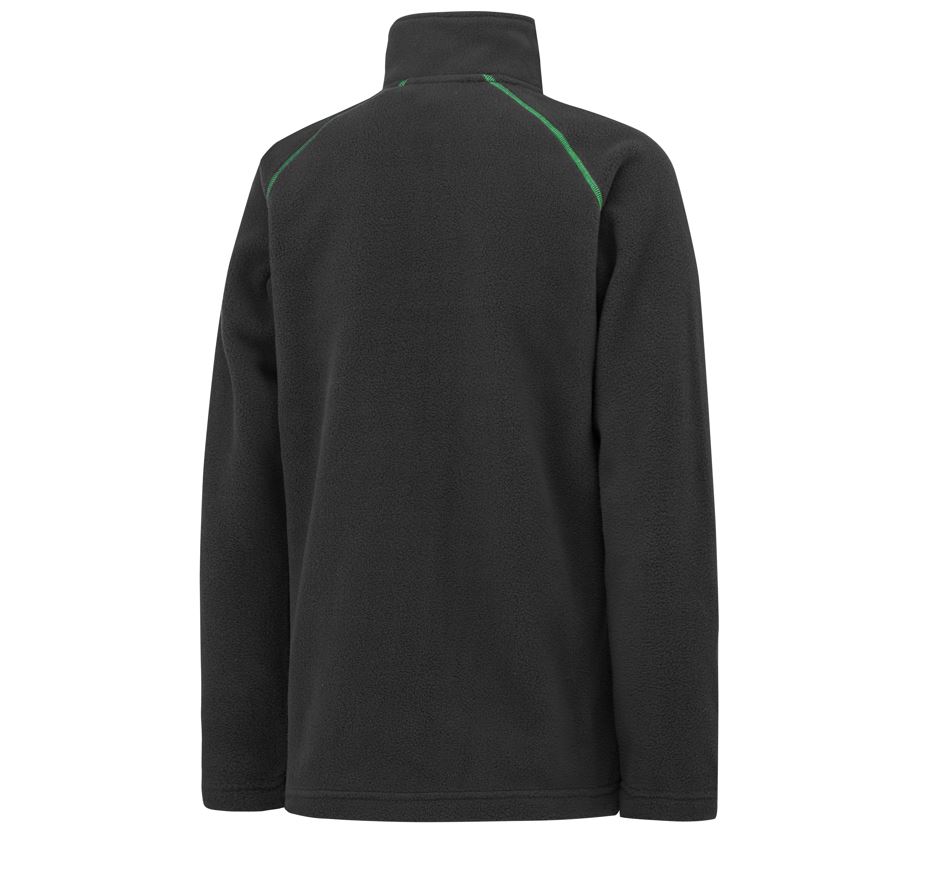 Bequeme und dehnbare Fleece-Jacke mit weicher gebürsteter Innenseite. 2 Seitentaschen mit Reißverschluss. Kontrastdetails und Überwendlichnähte in Grün. Material: 100 % Polyester, 260 g/m2.