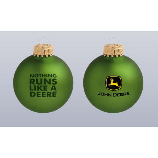 Bringen Sie festliches Flair in die Weihnachtszeit mit unserem exklusiven Weihnachtskugelset. Das Set besteht aus hochwertigen, mattgrünen Glaskugeln, die jedem Weihnachtsbaum einen Hauch von Klasse verleihen. Die eine Kugel ist elegant mit dem John Deere-Logo verziert, die andere mit dem Schriftzug „NOTHING RUNS LIKE A DEERE“. Ein festliches Highlight für Ihre Weihnachtsdekoration – oder als besonderes Geschenk.