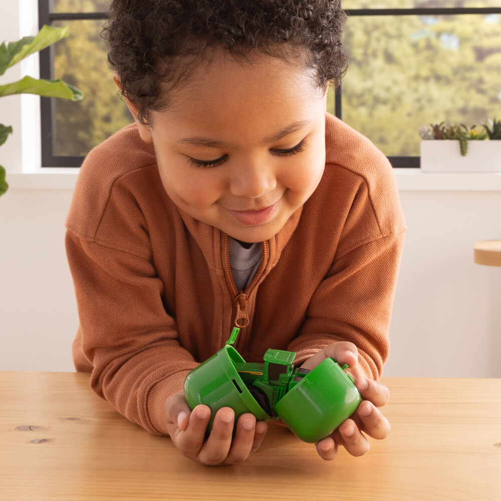 Which will you get? Discover the excitement of opening a John Deere surprise capsule. Inside each one, you’ll find a fun vehicle ready to race—just pull back and watch it go! With several unique items to collect—including two different styles of tractor, a combine, a gator, and even a rare muddy tractor—there's plenty of fun to explore. Perfect for kids age three and up, these rugged mini vehicles are ready to go. No batteries are needed, so the fun can begin right away! They make great party favors too. Get ready to rev up your collection with these John Deere farm toys.