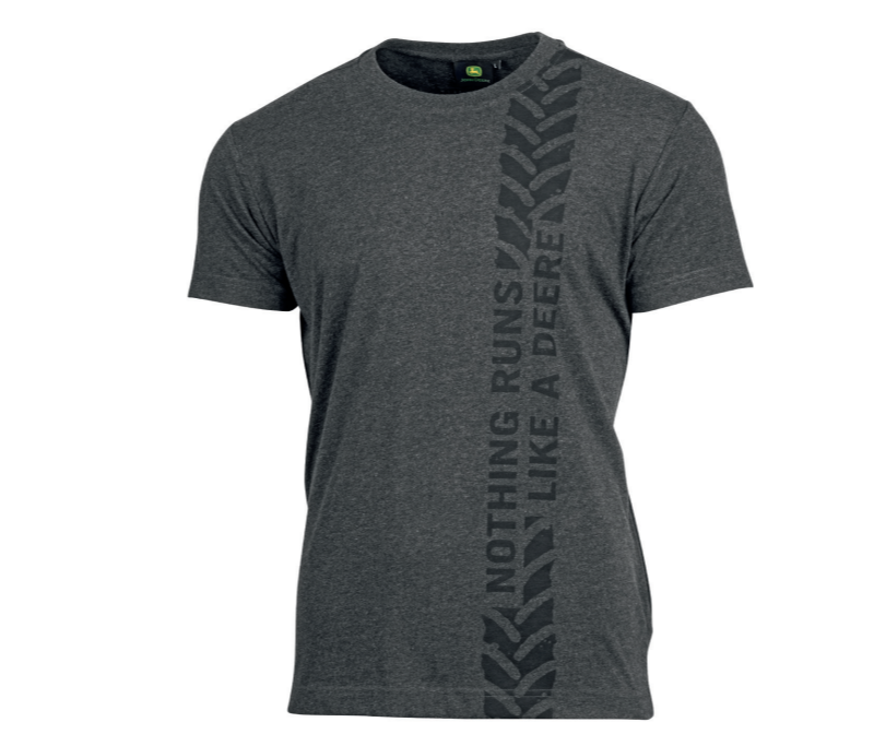 T-Shirt in anthracite with tractor track print at the front and logo on the back. Material: 100% cotton, single jersey