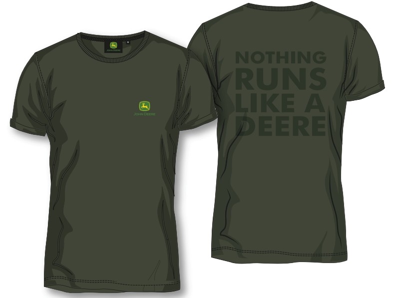 T-shirt made from soft jersey material. Nothing Runs Like A Deere print on the front. John Deere Logo embroidered in the neck. Material: 100% cotton, approx. 180g/m².