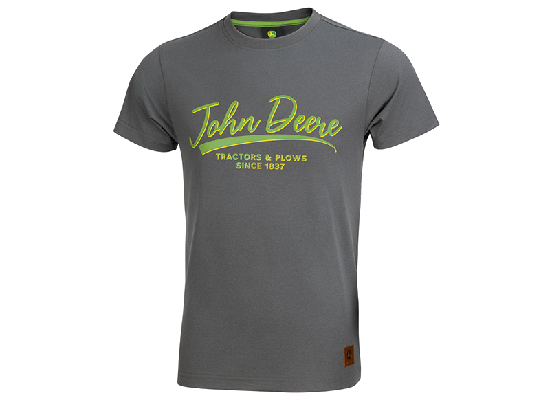 Comfortable T-shirt made from soft jersey fabric. The front features a classic John Deere print, while a John Deere label at the bottom adds an authentic detail. Perfect for everyday wear with a simple and timeless look.