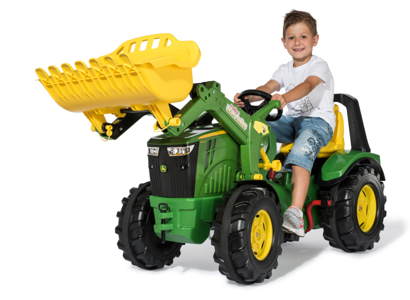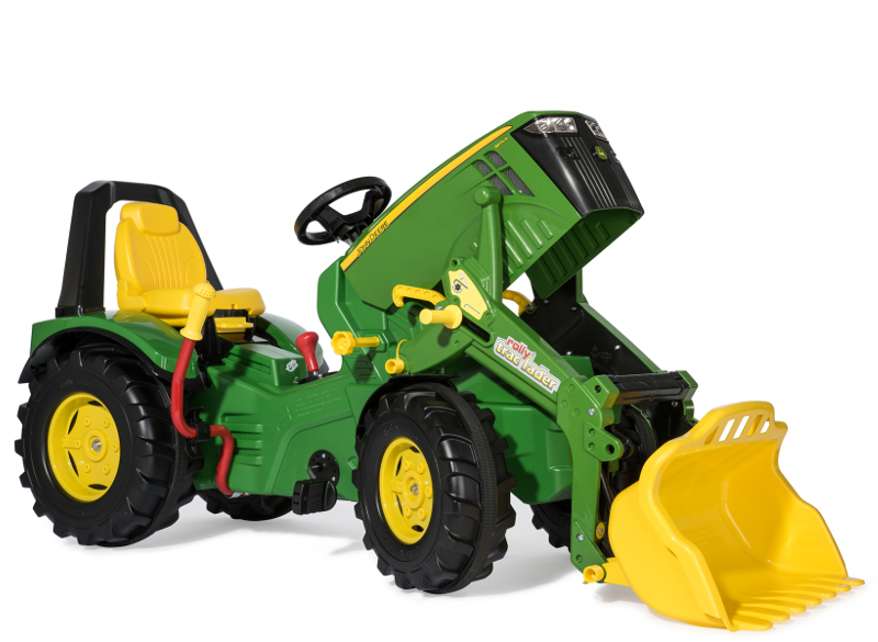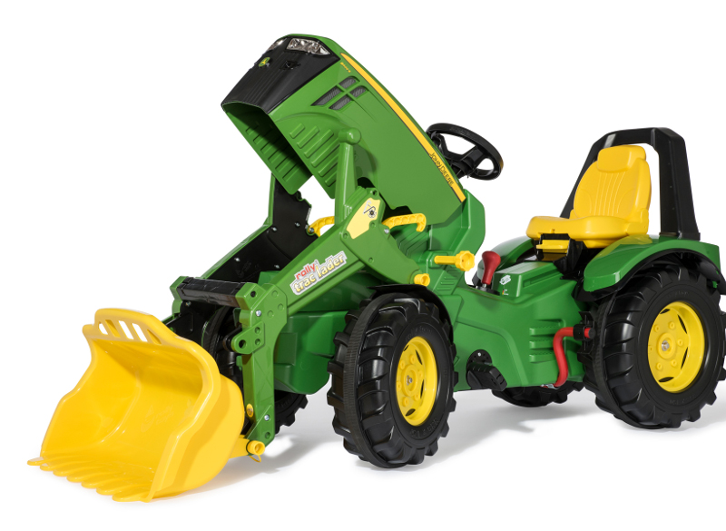 The largest pedal tractor in the John Deere range from rolly toys is great fun for youngest farmers in training. This premium model of the pedal tractor fleet features and adjustable seat with rollover bar and hard plastic wheels with a rubber band for better grip and low driving noise. The bonnet can be opened and provides a little storage space for important things the driver needs to take with. The pedal tractor is equipped with a rollyTrac loader, 2-gear shift and brakes. This toy is suitable for children from the age of 3 years with a body height of between 104 cm and 134 cm.