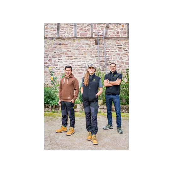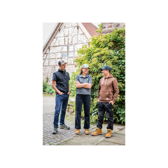 New Operator Trousers made of durable polyester-cotton twill with 4-way stretch fabric and reinforced sections in polyester-elastane blend, designed in a short-leg version for a perfect fit and comfort, featuring stretch panels at the back and over the knees for increased mobility, multiple pockets including knee pad pockets, zippered legs, and Velcro-adjustable cuffs.
