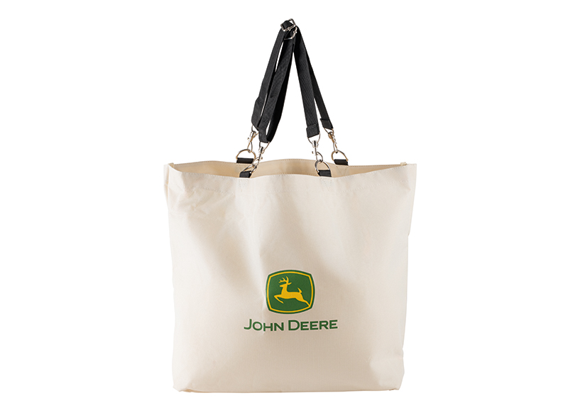 Large shopping bag with printed John Deere logo. Made of linen. Plenty of storage space in the main compartment, with adjustable straps for comfortable carrying over the shoulder.