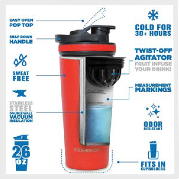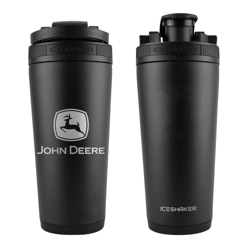 John Deere Double Wall Insulated Stainless Shaker Cup. This shaker can hold up to 780 ml (26 oz) of your favorite beverage. Material: 100% Stainless Steel.