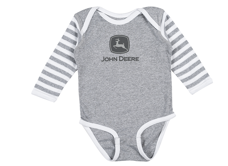 Combinaison à manches longues John Deere gris oxford pour bébé avec marque sérigraphiée au centre de la poitrine. Composition : 100 % COTON TRICOTÉ