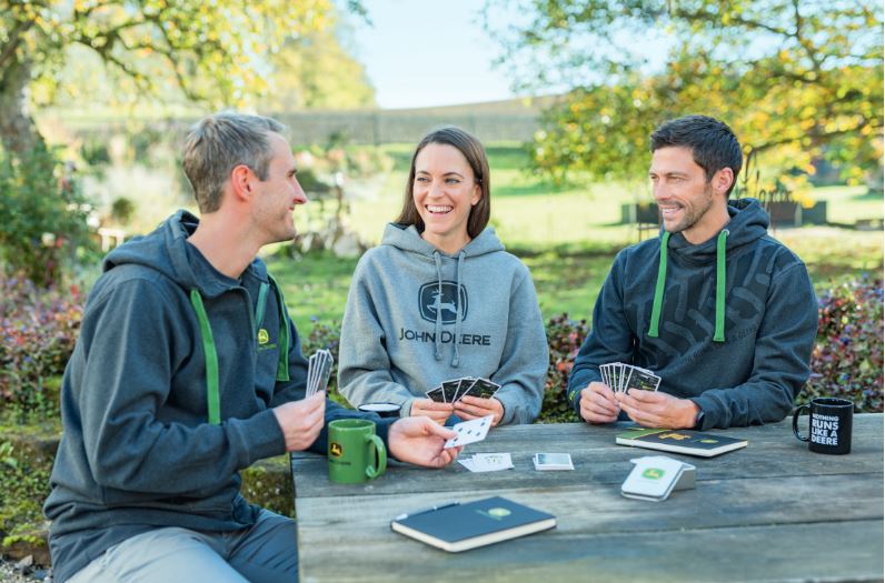 Le jeu de cartes John Deere vous promet bien des parties endiablées. Vous pourrez par exemple de jouer à la bataille avec vos enfants ou au poker avec vos amis. Les cartes sont illustrées avec un tracteur John Deere et sont livrées dans une boîte collector solide en fer-blanc qui les protège et les met en valeur sur votre étagère de jeux. 54 cartes dans une boîte.