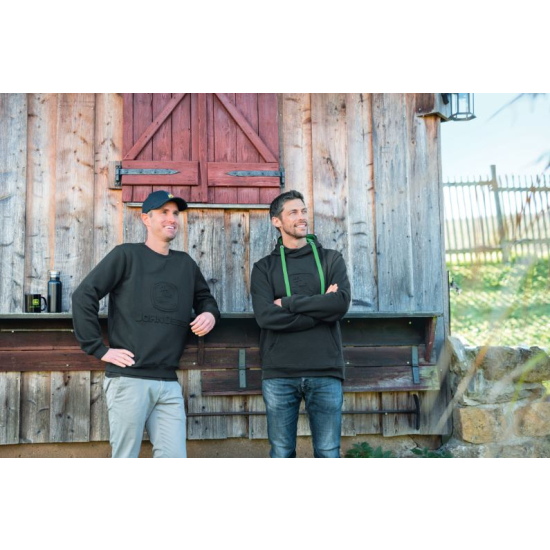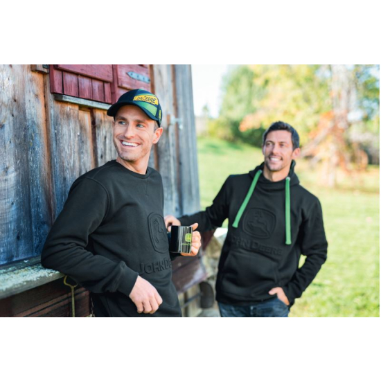 Sweatshirt confortable en noir avec logo John Deere en relief sur la poitrine. Composition : 80 % coton, 20 % polyester.
