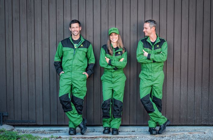 Combinaison John Deere classique avec ouverture frontale boutonnée. Deux poches à rabat au niveau de la poitrine. Poches latérales obliques et poches arrière plaquées. Poche pratique sur la cuisse avec rabat. Taille élastique pour plus de confort. Poches pour genouillères et ourlet extensible de +5 cm. Composition : 65 % polyester, 35 % coton