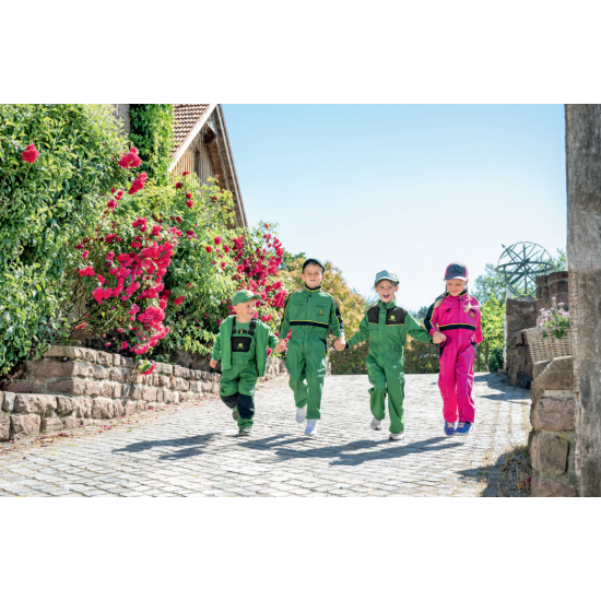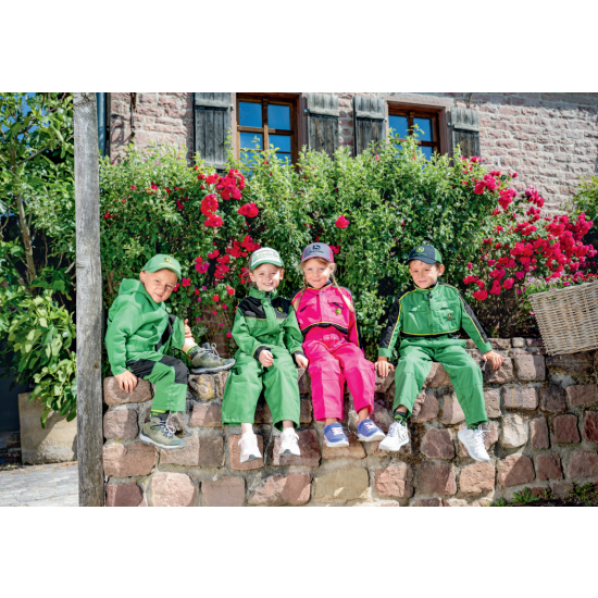 Combinaison junior John Deere classique avec ouverture frontale zippée, poche poitrine avec rabat, deux poches latérales obliques et une seule poche arrière. Taille élastique. Bande réfléchissante jaune contrastée pour un look John Deere classique. Patte de boutonnage ajustable avec boutons-pression. Composition : Composition : 65 % polyester, 35 % coton