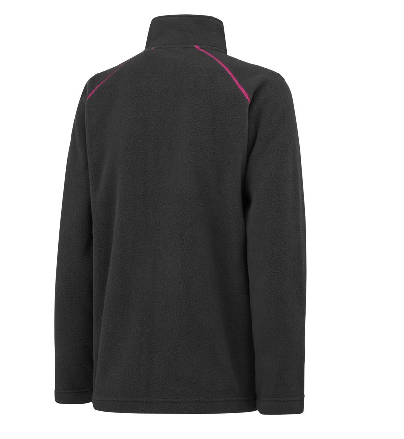 Veste polaire junior confortable et élastique avec intérieur gratté doux. 2 poches latérales à fermeture éclair. Détails contrastés et coutures en surjet roses. Composition : 100 % polyester, 260 g/m2.