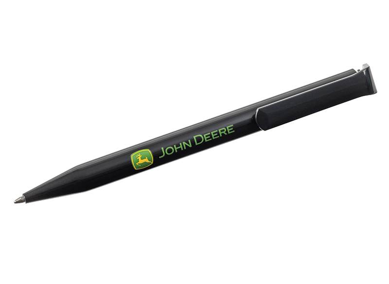 Stylo à bille en plastique haute qualité avec bouton-poussoir et finitions brillantes. Équipé d’une grande capacité de recharge premium (1,0 mm). Logo John Deere imprimé sur un côté. Encre bleue