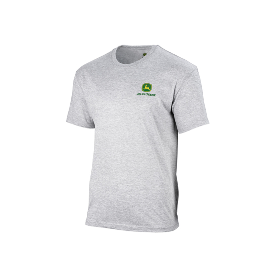 T-shirt John Deere grigio Oxford con stampe serigrafiche del logo sul petto a sinistra e del trattore al centro nella parte posteriore. Materiale: 60% COTTONE 40% MAGLIA DI POLIESTERE