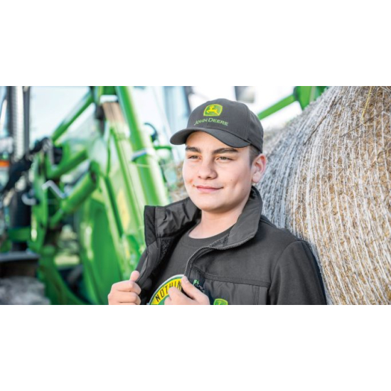 Cappellino in twill nero John Deere con logo ricamato e chiusura regolabile a strappo sulla parte posteriore. Materiale: 100% twill di cotone. Sostituzione di MCDW080000BK.