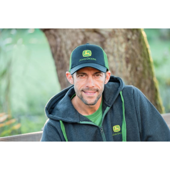 Cappellino giallo e verde con parte posteriore in rete John Deere con logo ricamato e chiusura regolabile a scatto sulla parte posteriore. Materiale: parte anteriore: 100% cotone parte posteriore: 100% rete di poliestere. Sostituzione di MCDW080277BK.