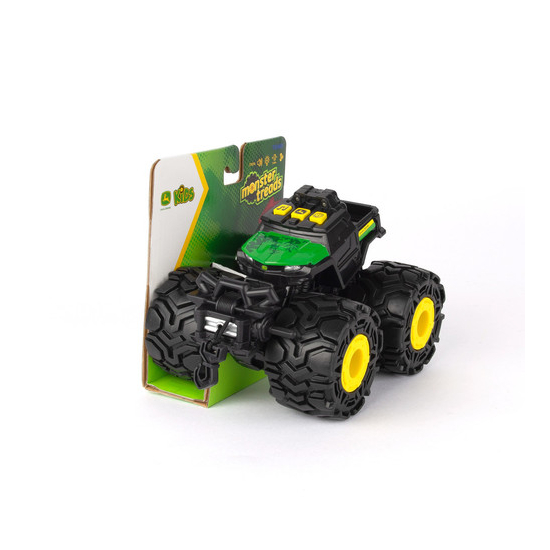 Il Gator™ in scala sei pollici con battistrada Monster è dotato di pneumatici molleggiati con esclusivi battistrada unici nel proprio genere! Premendo uno dei tre pulsanti si possono ascoltare effetti sonori divertenti come il rombo del motore Monster e delle musiche. Sono incluse le batterie e il pacchetto PROVAMI. Ottenete il meglio sotto ogni punto di vista con la potenza di John Deere e lo stile dei veicoli Monster! Età: a partire dai 3 anni