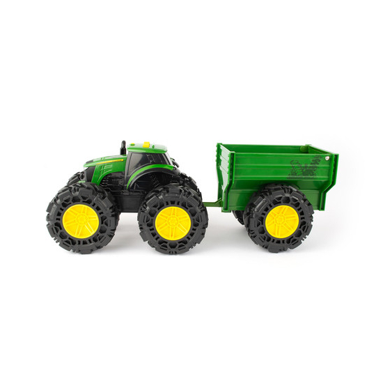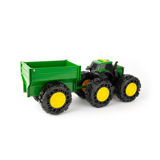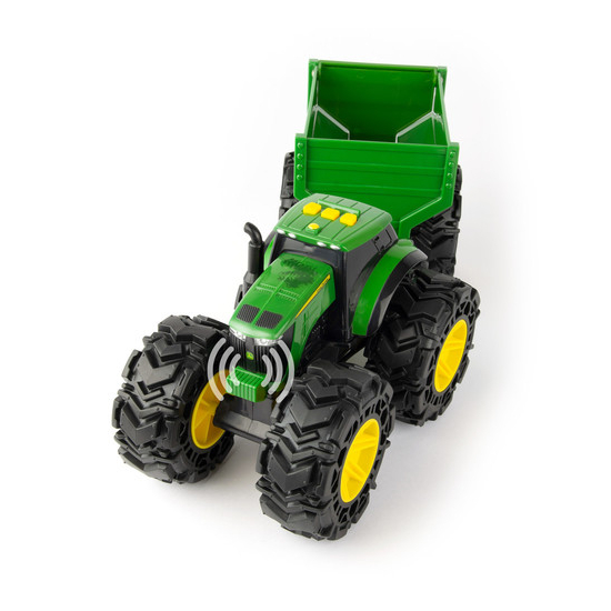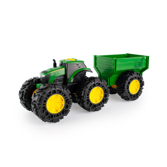 I battistrada Monster uniscono il realismo di John Deere con l'incredibile stile dei veicoli Monster per ottenere il meglio sotto ogni punto di vista! Questo trattore giocattolo John Deere con rimorchio è dotato di luci, effetti sonori e pneumatici molleggiati per ancora più azione e avventure fuoristrada! Tra le ulteriori caratteristiche ci sono i battistrada con un nuovo design e una porta del rimorchio apribile. Il regalo perfetto per i piccoli appassionati di John Deere nella vostra vita! Batterie incluse, per iniziare a divertirsi fin da subito. Età: a partire dai 3 anni