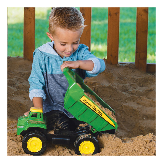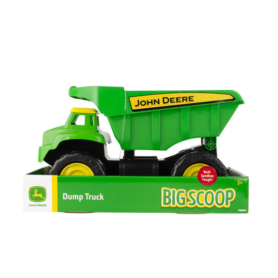 Porta il dumper Big Scoop John Deere ovunque e sarà pronto per affrontare ogni sfida. Con la sua semplice funzione di ribaltamento i bambini si divertiranno a caricare e svuotare il dumper, che è ideale per giocare all'aperto nella sabbiera. I grandi pneumatici tassellati, le ruote libere e l'elevata distanza dal suolo garantiscono un'autentica qualità fuoristrada.