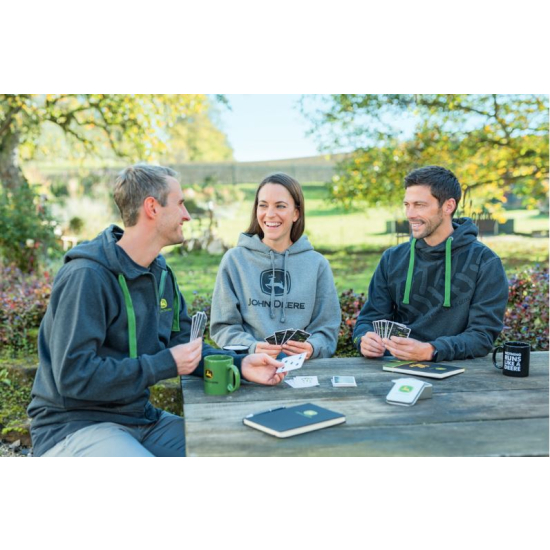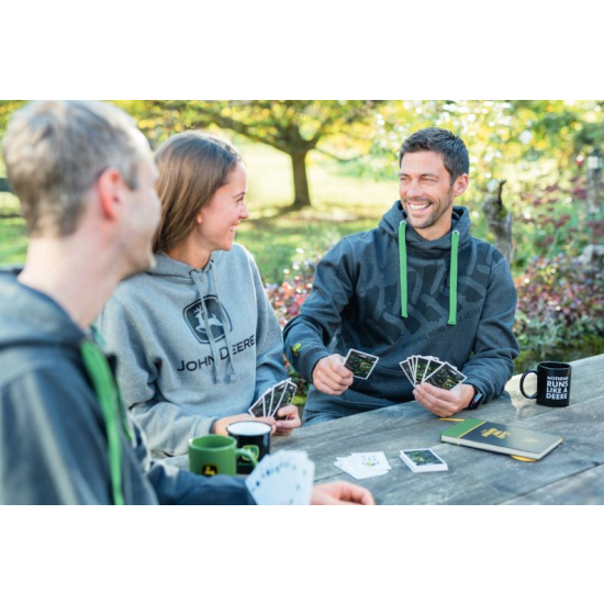 Mettete le carte John Deere sul tavolo da gioco. Questo set è perfetto per ogni tipo di gioco, da rubamazzo con i bambini alla serata di poker con gli amici. Le carte raffigurano un trattore John Deere e sono tenute in ordine in una robusta scatola da collezione da sfoggiare sullo scaffale dei giochi. 54 carte in una scatola.