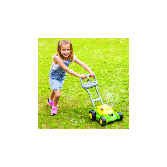 Trasformate il vostro giardino in un mondo di divertimento fatto di bolle con il tosaerba John Deere Bubble-N-Go. Questo giocattolo è stato progettato per bambini dai 3 anni in su che non vedono l’ora di imitare il loro adulto preferito e di divertirsi a lavorare in giardino. Ispirato ai veri tosaerba John Deere, questo giocattolo presenta caratteristiche realistiche e suoni meccanici che stimolano l’immaginazione. A ogni pressione viene emessa una scia di bolle che rende subito i lavori in giardino un divertimento! È sufficiente riempirlo con la soluzione per bolle di sapone inclusa, premere e sprigionare miriadi di bolle. Mentre giocano, i bambini imparano e sviluppano responsabilità, abilità motorie e creatività attraverso un dinamico gioco di simulazione. Non sono necessarie batterie per “tagliare” il prato: l’energia ce la mettono i bambini. Premete per sprigionare le bolle e create un’infinità di ricordi!