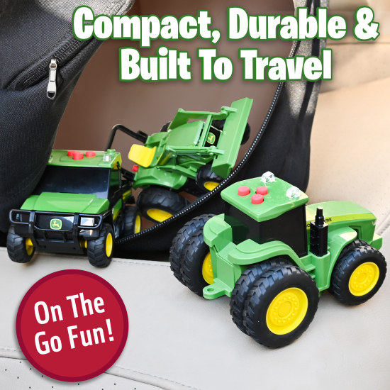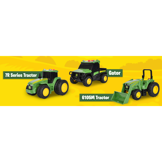 L’avventura vi aspetta con i veicoli agricoli in miniatura di John Deere. Il set include tre veicoli iconici John Deere: Trattore Serie 7R, Trattore 6105M e Gator. Ogni mini veicolo è progettato per rispecchiare le macchine reali a grandezza naturale, con marchi autentici e una costruzione robusta. Premendo uno dei tre pulsanti si attivano suoni reali e luci lampeggianti. Hanno anche un motore a frizione inversa: basta spingere e rilasciare, e vederli andare. Grazie a parti mobili e funzioni incredibili, i bambini ameranno esplorare diversi scenari di gioco fantasiosi. Arate i campi con il trattore della serie 7R, trasportate carichi con il trattore 6105M o attraversare terreni difficili con il Gator. Indipendentemente da come vorranno giocare i bambini, i mini camion stimoleranno sicuramente l’immaginazione del vostro piccolo. Inoltre, grazie alle loro dimensioni compatte, circa 12,7 cm di lunghezza (5 pollici), sono facili da portare con sé per giocare in viaggio. Preparatevi a un divertimento continuo giocando alla fattoria per bambini dai 3 anni in su con John Deere.