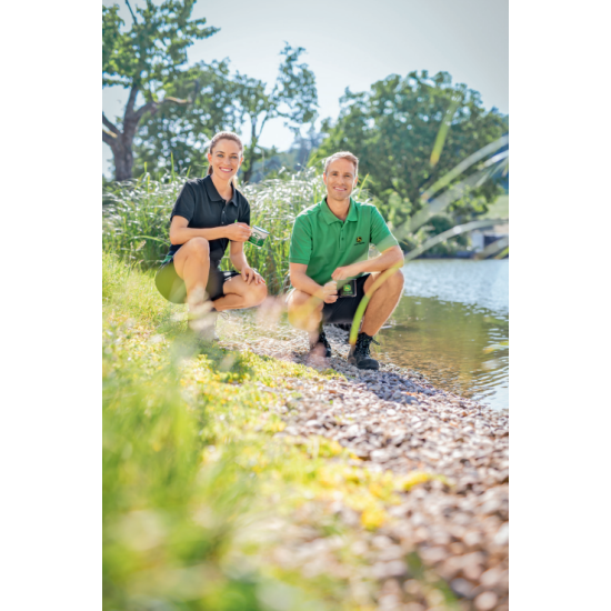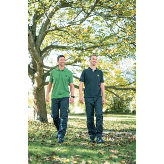 Polo comoda e di alta qualità in piqué con logo John Deere ricamato sulla parte sinistra del petto. Materiale: 100% cotone.