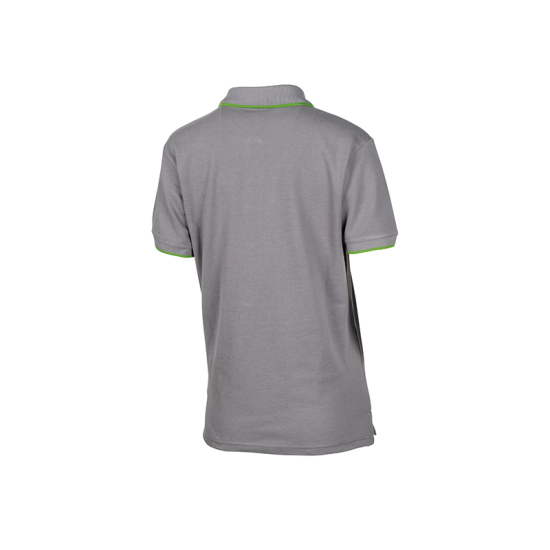 Polo da donna, di alta qualità, colore grigio antracite, realizzata in piqué. Logo ricamato sul petto a sinistra. Dettagli di colore verde su manica, colletto e abbottonatura. Materiale: 100% cotone.