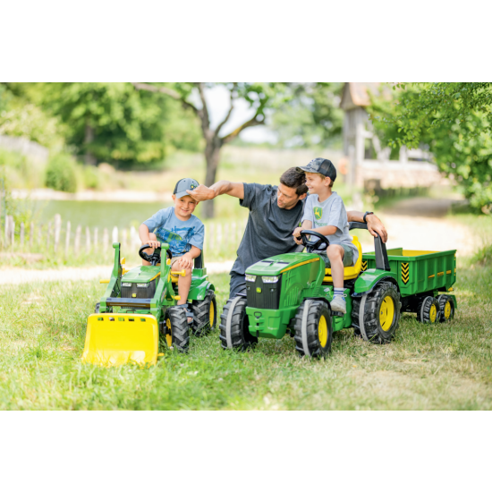 rollyFarmtrac John Deere 7310R - include caricatore rollyTrac, caricatore frontale facile da applicare e rimuovere, ruote pneumatiche, due marce, ruota libera, freno a mano. Questo giocattolo è adatto per bambini a partire dai 3 anni di età con un’altezza tra 104 e 134 cm.