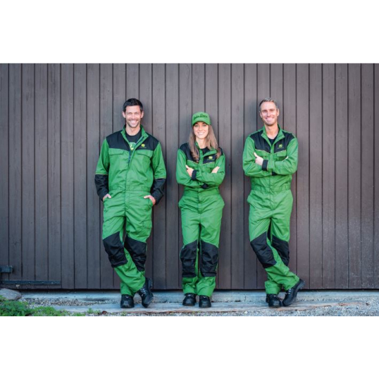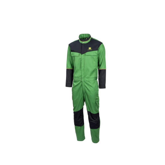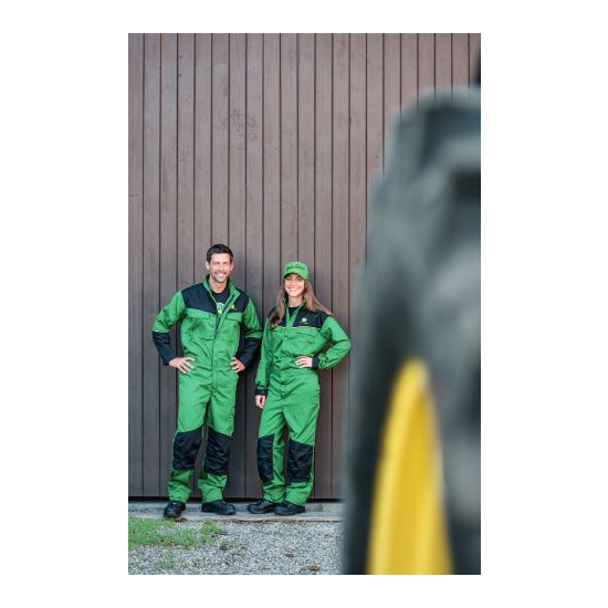 Tuta John Deere classica con apertura a zip sulla parte anteriore. Due tasche sul petto con risvolti. Tasche laterali alla francese e tasche posteriori a toppa. Pratica tasca con risvolto sulla coscia. Vita elasticizzata per un maggiore comfort. Tasche sulle ginocchiere e orlo estensibile di +5 cm. Materiale: 65% poliestere, 35% cotone