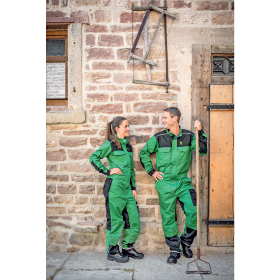 Tuta da donna John Deere, sintesi perfetta di forma, comfort e durata per i lavoratori moderni. Questa tuta è dotata di numerose tasche (compresa una all'altezza delle ginocchia), cintura elastica, bordi riflettenti, cuciture rinforzate, cerniere sulle gambe ed è realizzata con il nostro nuovo tessuto stretch a 2 vie per un maggiore comfort e libertà di movimento. Questo prodotto è idoneo al lavaggio industriale a 60 gradi. Materiale: 64% poliestere, 34% cotone, 2% EOL, 275 g/m2