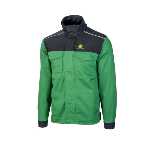 Giacca da lavoro John Deere, perfetta sintesi di forma, comfort e durata per i lavoratori moderni. Questa giacca è dotata di numerose tasche (compresi taschini sul petto, tasche per le mani, tasca interna), cuciture rinforzate, polsino regolabile e bordo riflettente ed è realizzata con il nostro nuovo tessuto stretch a 2 vie per un maggiore comfort e libertà di movimento. Questo prodotto è idoneo al lavaggio industriale a 60 gradi. Materiale: 64% poliestere, 34% cotone, 2% EOL, 275 g/m2