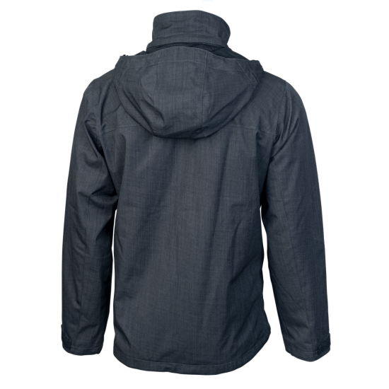 Questa pratica giacca nera mélange, con vestibilità moderna, garantisce il giusto comfort e movimento mantenendovi asciutti e confortevoli in presenza di pioggia e vento. La colonna d'acqua è di 5000 mm e la traspirabilità è di 5000 g/24 h, che rendono la giacca antivento e impermeabile, oltre che comoda. Dotata di tasca interna con chiusura a cerniera, tasche laterali, tasche sul petto, cappuccio rimovibile. Regolazione elastica con coulisse situata nell'orlo inferiore e chiusura regolabile a velcro sui polsini. Resistente cerniera centrale (YKK). Fodera traspirante. Materiale: 100% poliestere, 170 g/m².