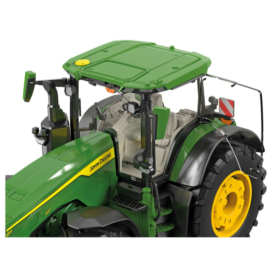 Riproduzione dettagliata del nuovo trattore John Deere 8R 410 in scala 1:32, realizzato in metallo pressofuso con pezzi in plastica. La cabina ha interni estremamente dettagliati e il modellino offre numerose funzioni filigranate quali cofano e portiera apribili, assale flottante, tiranti superiore/inferiore mobili, sedile dell'operatore girevole, sportello del frigo apribile e molto altro. Svariate stampe in filigrana anche per i piccoli cartelli di segnalazione. È dotato di targa con numero: MA-R-8410. Adatto ai ragazzi dai 14 anni in su