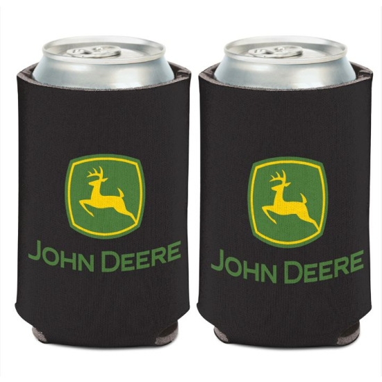Refrigeratore per lattine da 355 ml con marchio commerciale John Deere. Refrigeratore per lattine nero con logo del marchio commerciale sul lato anteriore e posteriore. Materiale: 100% neoprene.