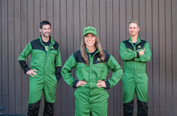 Klasyczny kombinezon John Deere zapinany z przodu na guziki. Dwie kieszenie na piersi z klapkami. Ukośne kieszenie boczne oraz tylne naszywane. Praktyczna kieszeń udowa z klapką. Elastyczna talia zapewnia większą wygodę. Kieszenie kolanowe z podkładkami i obszycie, które można przedłużyć o maks. 5 cm. Materiał: 65% poliester, 35% bawełna