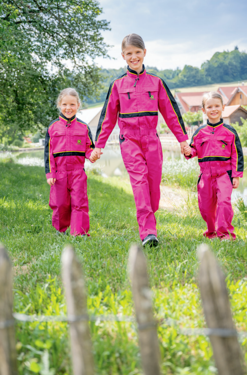 Obowiązkowa pozycja dla każdej małej fanki marki John Deere. Klasyczny różowy kombinezon John Deere z haftowanym logo na klatce piersiowej. Stosowny kombinezon jest także dostępny w wersji dla pań. Materiał: 35% bawełna, 65% poliester, 245 g/m²