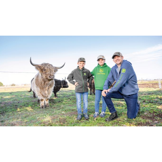 Pullover John Deere para jovens em velo verde, com capuz e impressão serigráfica do logótipo da marca comercial na frente. Material: 60% algodão, 40% poliéster