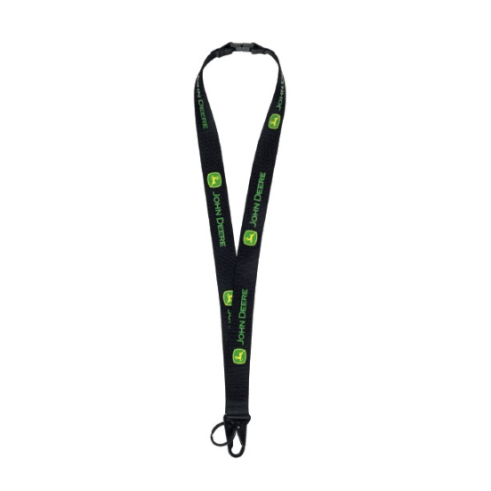 Cordão preto feito de 100% poliéster com mosquetão especial Eagle-Hook, gancho de pânico e logótipo da John Deere impresso. Substituição de MCV202211001.