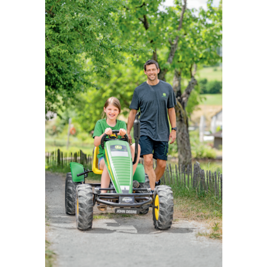 Svart John Deere T-shirt med skärmtryckt varumärkeslogotyp på vänster bröst och logotyptidslinje på mitten bak. Material: 100 % bomull